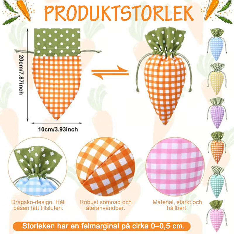 Morotsformad presentpåse med dragsko, söt och hållbar, perfekt för att förvara presenter, godis och snacks. 🥳