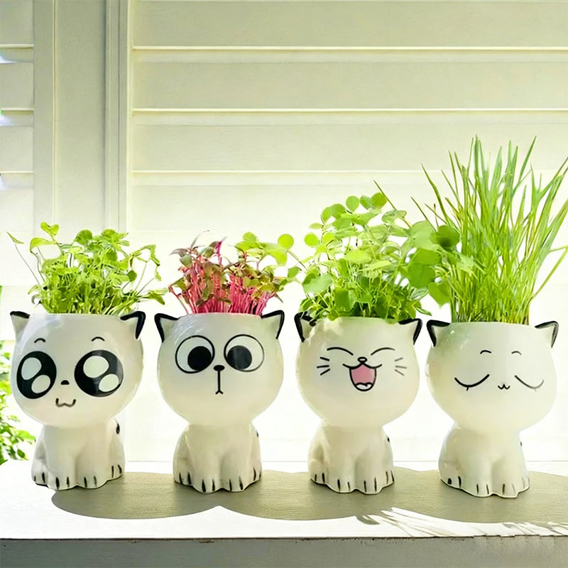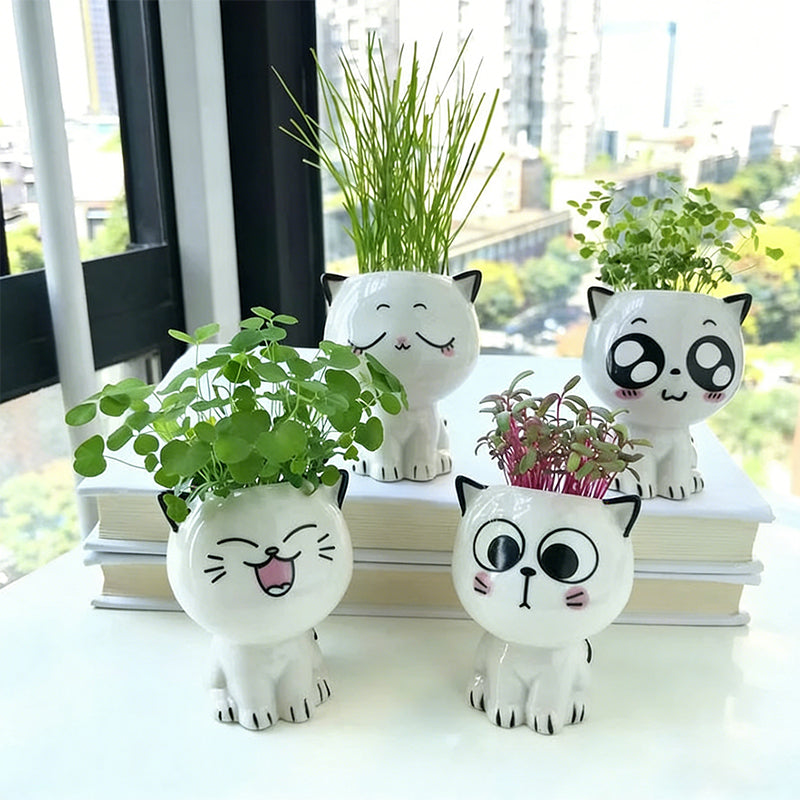 đ±BedĂ„rande tecknad kattdesign â denna söta keramiska blomkruka med katt ger en touch av lekfull charm till vilket utrymme som helst.