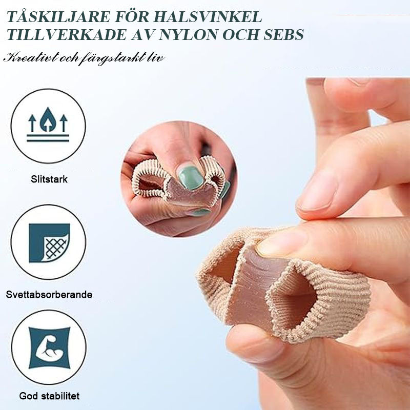 Denna produkt korrigerar tårna varsamt, lindrar trycket från hallux valgus och korrigerar enkelt hammartå. Dess elastiska design med dubbla öglor garanterar en bekväm passform för alla släktingar. Mjuk, stretchig och elegant bekväm, perfekt för vardagsbruk och ger lindring till trötta fötter!