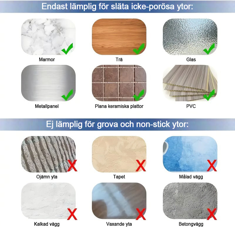 • Starkt lim, ingen borrning krävs - Njut av en problemfri installation med ultrastark självhäftande baksida som fäster stadigt till släta ytor som kakel, glas och rostfritt stål utan att lämna rester.