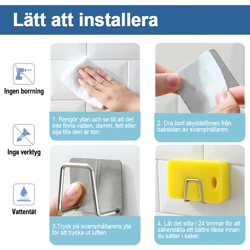 Håll ditt kök och badrum snyggt och organiserat med vår självhäftande svamphållare och hängkrokar!