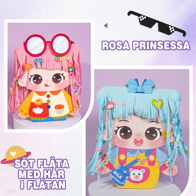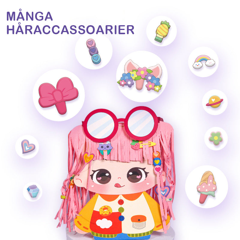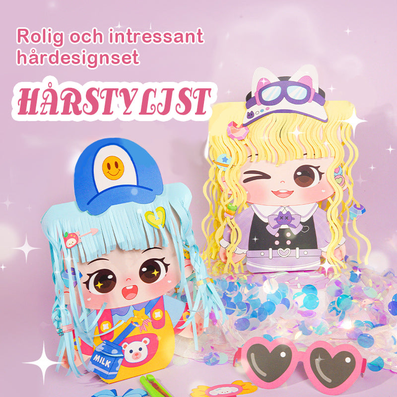 Kreativt frisyrpysselset för barn - Gör-det-själv hårstyling pappersdocka aktivitetsset