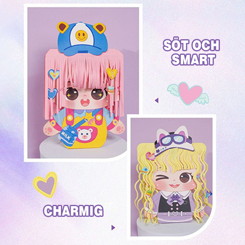 • Bedårande pappersdockor – Levereras med söta dockansikten i tecknad stil som barn kommer att älska att dekorera och styla om och om igen.