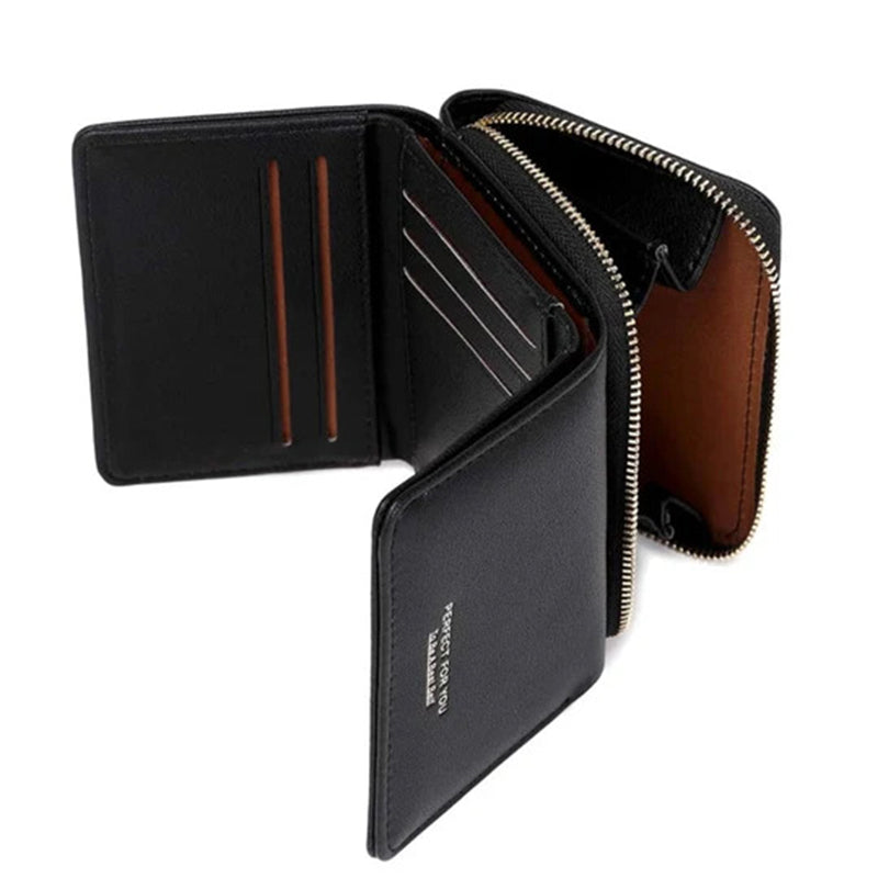 🖤💖 Tillverkad av premium PU-läder, den har ett elegant bokstavstryck, myntficka med dragkedja 💰🔒, flera kortplatser 💳📂 och ett genomskinligt ID-fönster 🆔👁️. Kompakt men ändå rymlig, den är idealisk för affärer, avslappnade utflykter eller en omtänksam present! 🎁💕