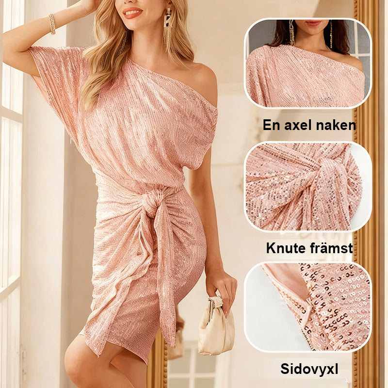 • 1 * Damklänning med en axel och paljettmönster, glittrande festklänning för klubb