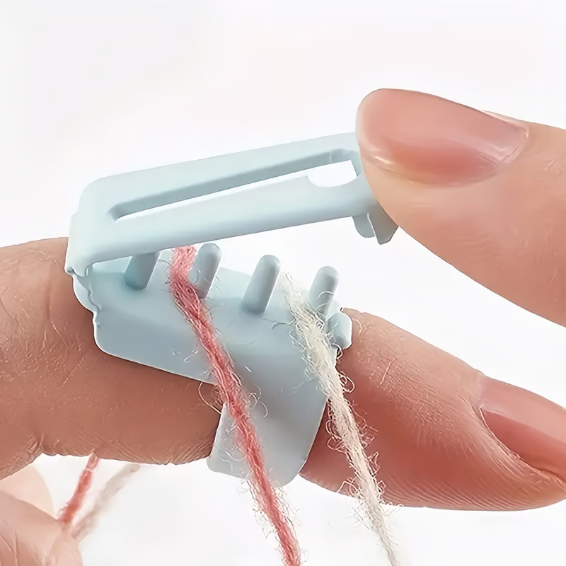 Den bÀrs pÄ fingertopparna, vilket hjÀlper till att fixera garnet och bibehÄller jÀmn spÀnning, smidigt utseende, hÄrt och stabilt, sÀkert och skadar inte fingrarna, vilket ger dig en bekvÀm kÀnsla av anvÀndning.