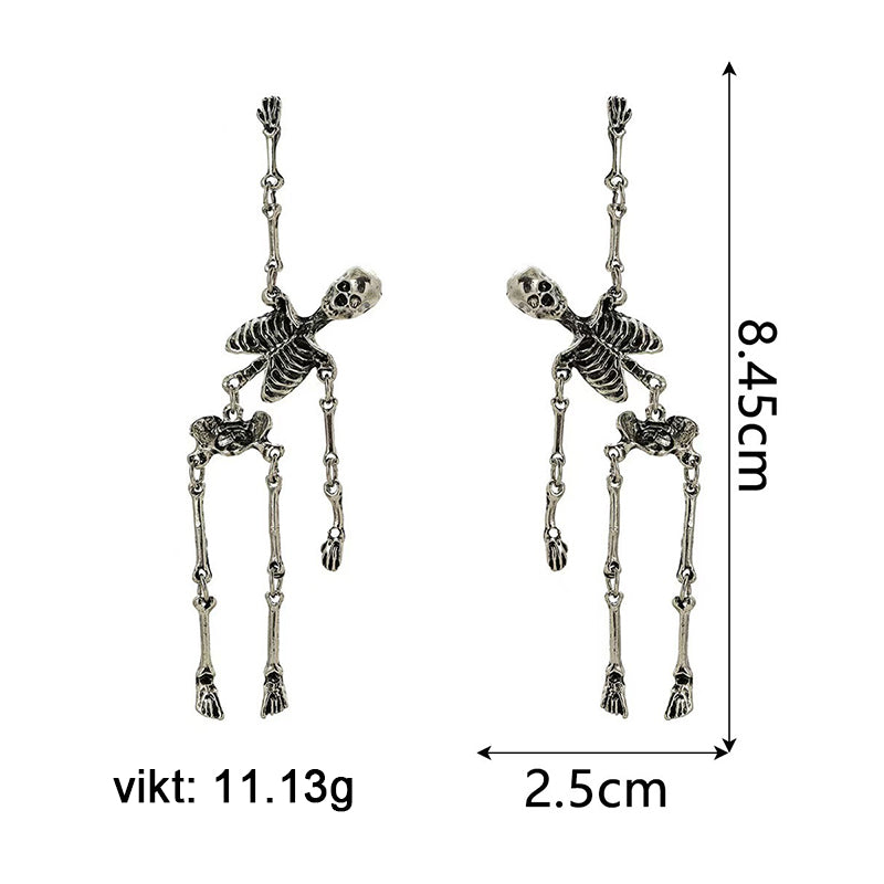 Snygg design: VÄra Halloween-örhÀngen har en design med ett mÀnskligt skelett, vilket framhÀver Halloweens fasor och skapar en festlig atmosfÀr. Ett mÄste för Halloween.