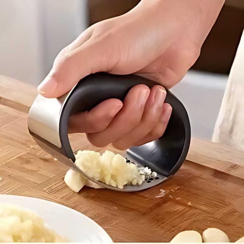 Med en lätt gungande rörelse fram och tillbaka kan du enkelt krossa eller hacka vitlök på halva tiden!